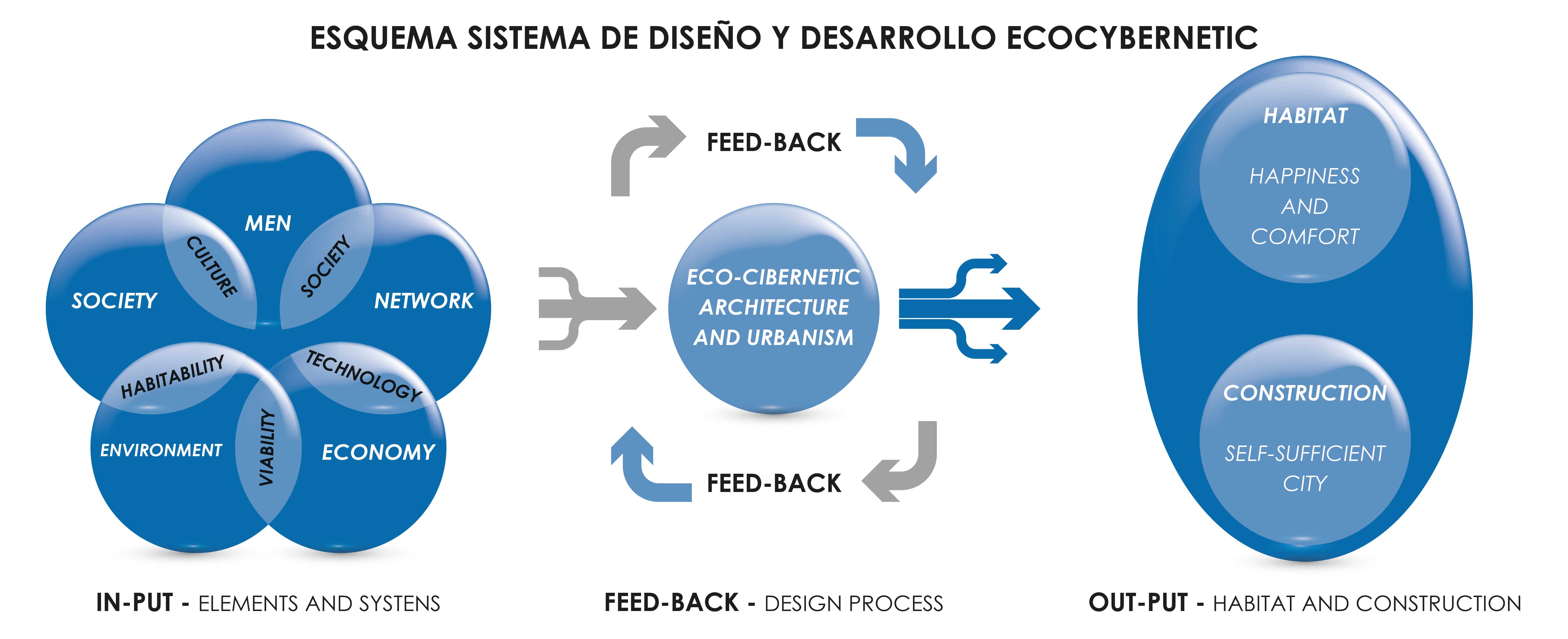 La importante crisis económica y energéticas actual hace imperativo tener nuevos IN-PUT con nuevas variables en la forma de vida, trabajar y construcción 4.0 teniendo en cuenta elementos y sistemas de uso de energías renovables y optimización energética para tener un OUT-PUT; ECOCYBERNETIC BUILDING SYSTEM, sistema de ECONOMIA 360º y CONSTRUCCION 4.0 que respete el medioambiente interactuando con el CONFORT y HABITAT de SER HUMANO (MEN) con un FEED-BACK con los elementos y sistemas ECOCYBERNMETIC NETWORK-ECONOMIA-MEDIOAMBIENTE-SOCIEDAD.